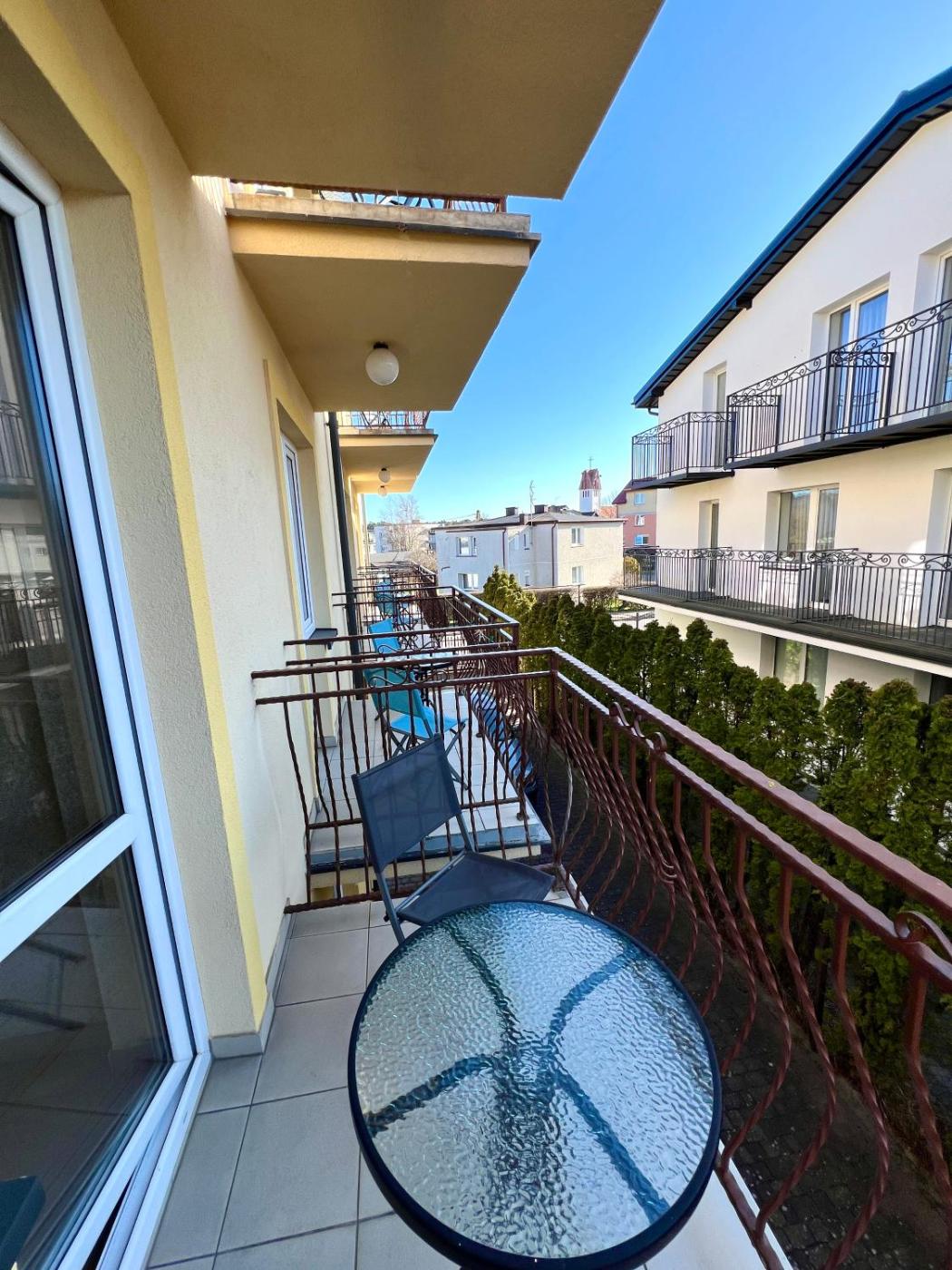 Pokój dwuosobowy. The double room offers soundproof walls, a tea and coffee maker, a balcony with garden views as well as a private bathroom featuring a shower. The unit offers 1 bed. Powierzchnia pokoju ok.: 15 mkw.
